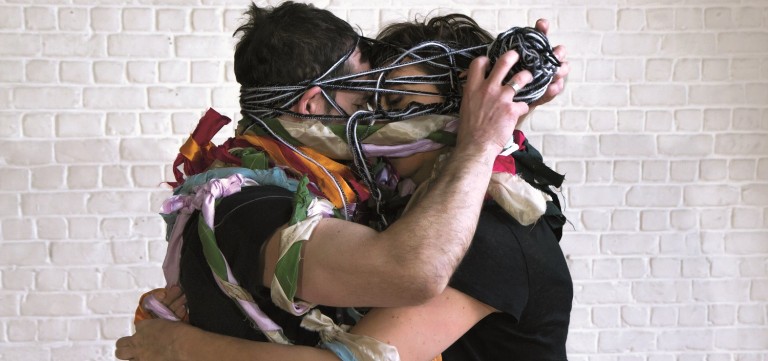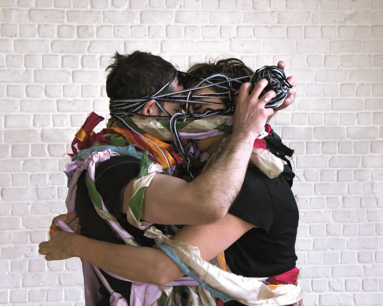 L’histoire vraie de Judith Scott, trisomique, sourde et muette, et de Joyce, sa sœur jumelle est le point de départ du spectacle. Enfants, elles furent séparées pour permettre à Joyce, la sœur « normale », de bien se développer. Trente-cinq ans plus tard, Joyce se relie à elle, permettant ainsi à Judith de devenir une grande figure de l’art brut et ce, en tissant des sortes de cocons multicolores.