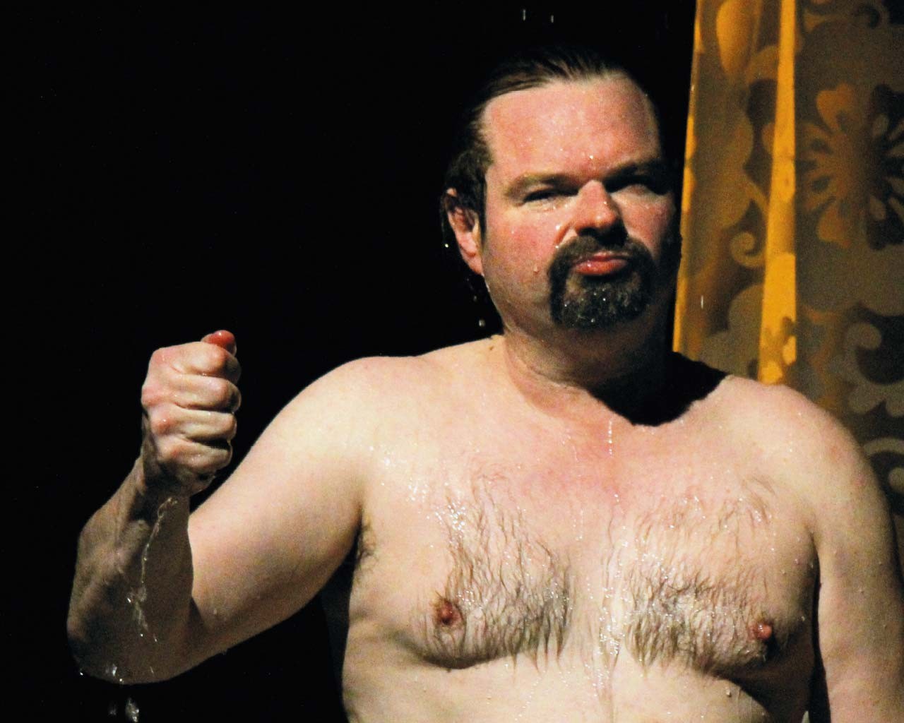 Le décor est aussi sobre qu'efficace : un carrelage de salle de bain, une chaise rudimentaire et un rideau de douche plastifié. [...]