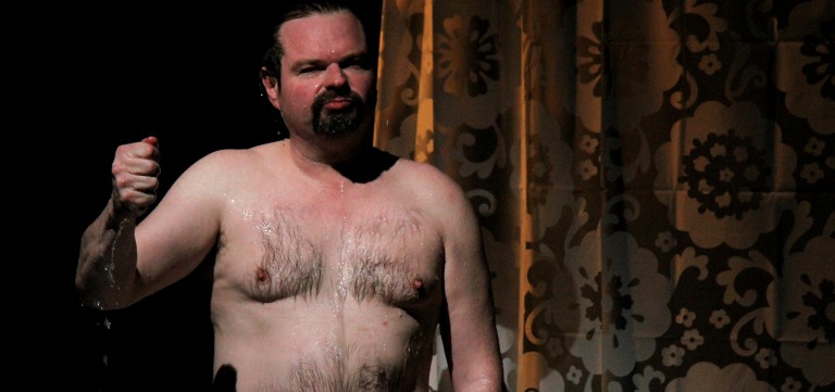 Le décor est aussi sobre qu'efficace : un carrelage de salle de bain, une chaise rudimentaire et un rideau de douche plastifié. [...]