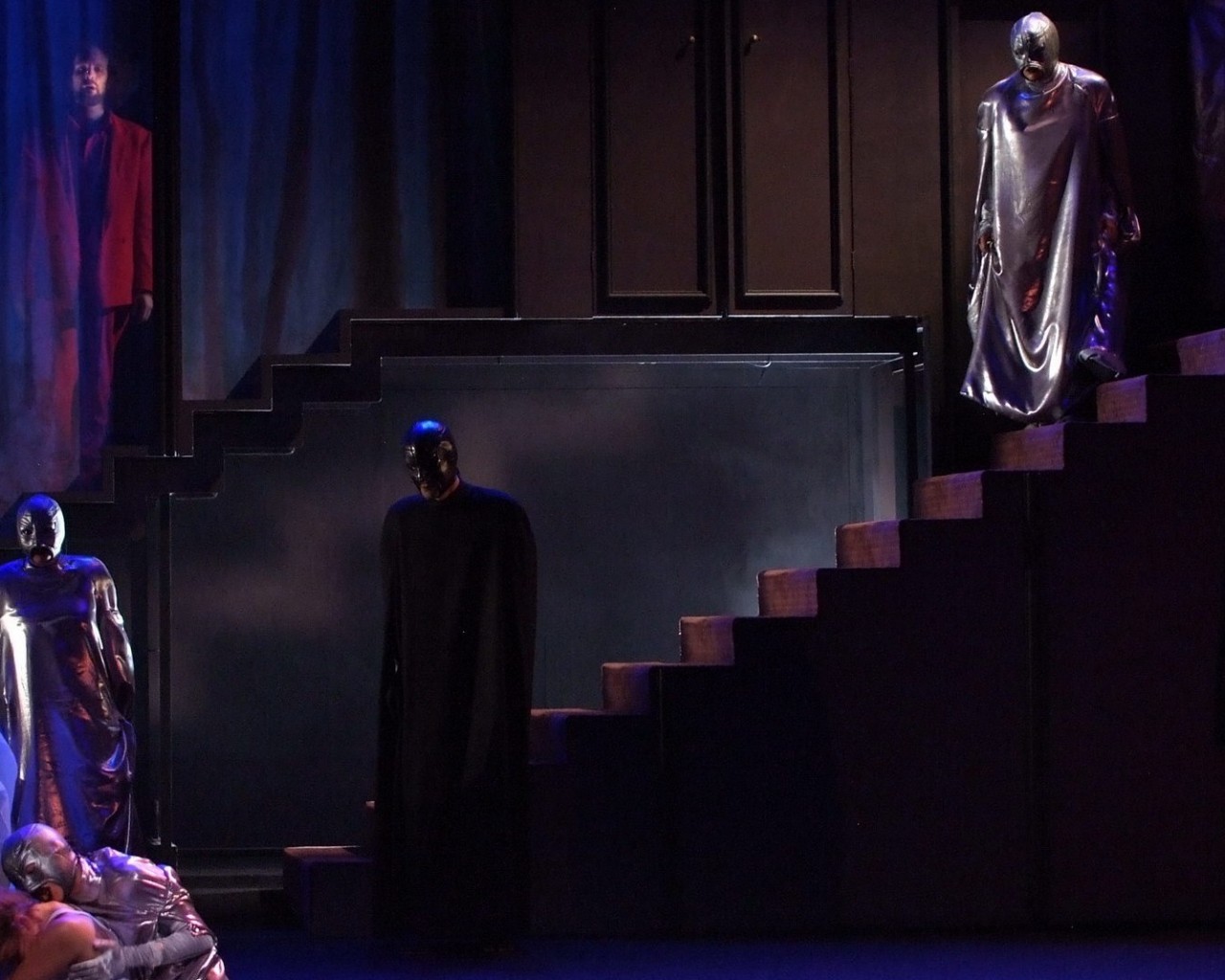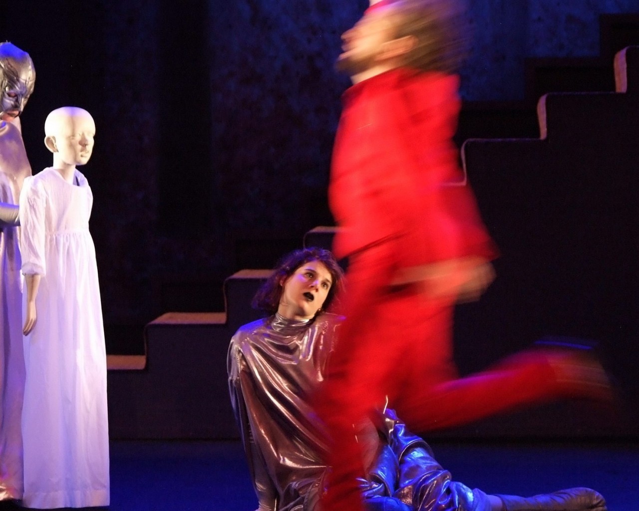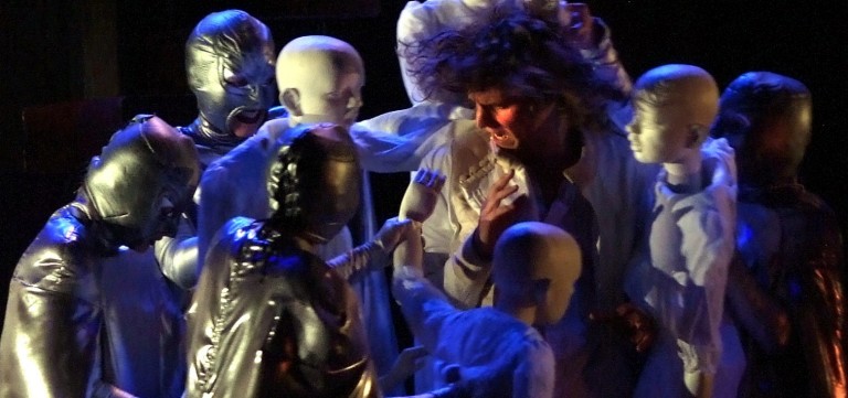 La tentation de penser à Roméo et Juliette ou Tristan et Yseult est grande dans ce ballet amoureux fusionnel porté par un magnifique texte très poétique. « Je suis au-dessus du bonheur », dit Carine à son amoureux qui lui demande si elle est heureuse. C'est sans compter sur la modernité de Crommelynck. Elle nous entraîne sur un terrain plus glissant. Les corps et les êtres qui se mélangent lors d'un étrange bal masqué mené par l'oncle de Carine (Itsbik Elbaz) dans un décor de carnaval vénitien rappellent étrangement le film de Kubrick, Eyes Wide Shut. Là, les plus jeunes sont confrontés à leurs désirs. Tandis que les êtres plus mûrs attendent le retour de flamme perdu. Les masques et les capes d'or et d'argent cachent les êtres mais révèlent les contradictions d'un monde en proie aux tentations, coincé entre tabous et convictions religieuses. « Si tu découvres mon visage, tu me connaîtras moins bien », glisse l'un d'eux. Tandis que les poupées immaculées, marionnettes portées accompagnant ces pantins rococo, invitent à interroger notre part d'enfance, superbe moment dans ce spectacle audacieux.