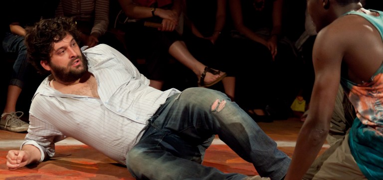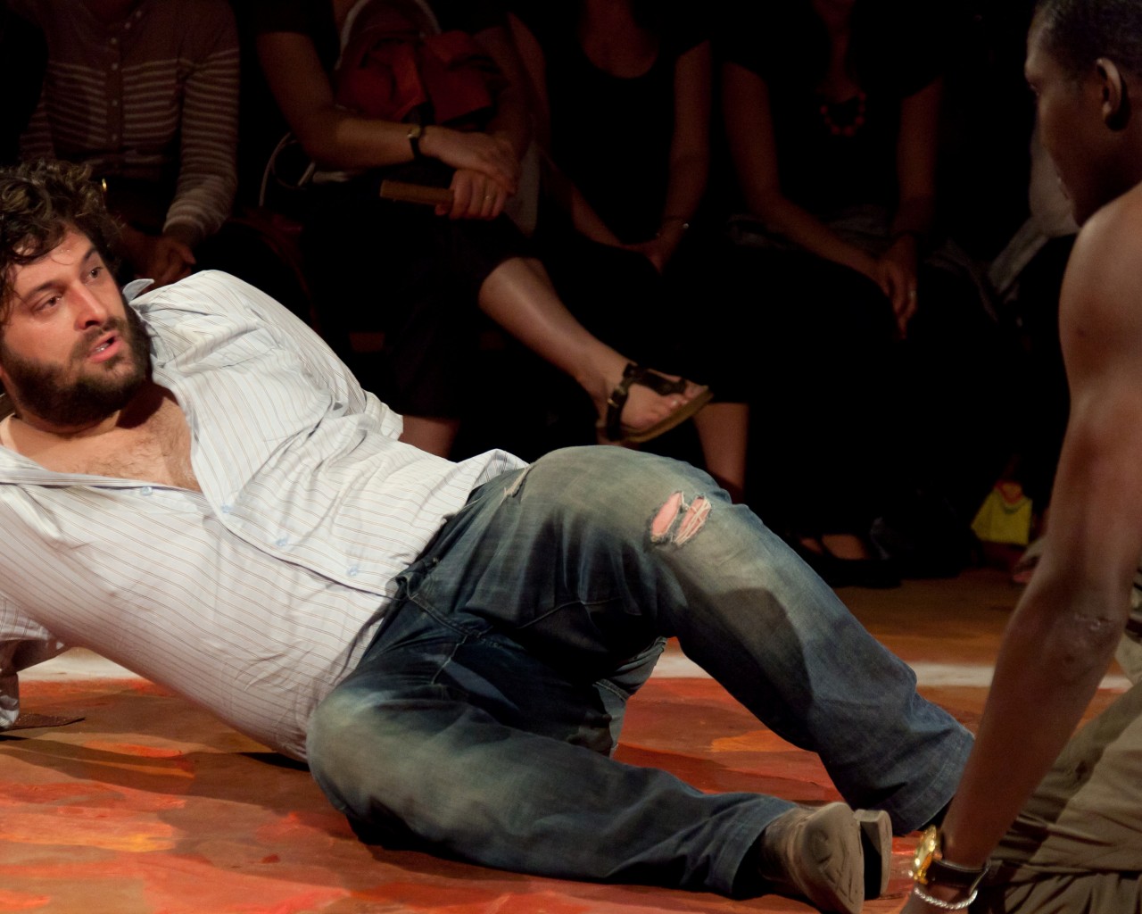 Créé en mai 2011 au Festival international Jeune Public de Ouagadougou, au Burkina Faso, Un paradis sur terre est une fable qui déboussole nos certitudes. Les Européens fuient leurs pays dévastés par des catastrophes écologiques et des guerres. Ils cherchent asile dans le Sud.«Réfugiés», ils sont soumis aux règles africaines...