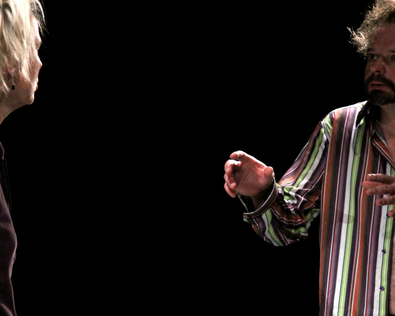 La mise en scène a la bonne idée de ne pas appuyer sur la brutalité sordide du texte. Jamais les deux personnages ne se touchent. Seuls les mots, et un jeu hargneux sans être vociférant, confrontent les formidables Philippe Jeusette et Valérie Bauchau. Tous deux, soignés dans leur apparence, ne jouent pas un quart-mondepoisseux mais un couple ordinaire, certes prompt aux injures, mais maniant la langue avec génie pour se faire tourner en bourrique.