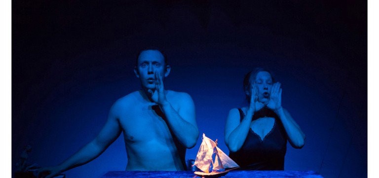 Grande figure du théâtre d’objet, Agnès Limbos convie Grégory Houben à sa table, où les objets déclenchent le récit. Des figurines de gâteau de mariage évoquent notre couple de naufragés du rêve américain. Une nappe d’un bleu moiré convoque la mer, symbole de l’océan de désarroi où ils se débattent depuis que la crise des subprimes leur a tout pris : maison, voiture à crédit, téléviseur. Un lit de sable et quelques palmiers de plastique vous emmènent sur une île déserte où le couple ruiné tente de se refaire une santé, sympathise avec les indigènes du coin et finit par reconstruire exactement le même modèle capitaliste qui les a conduits droit dans le mur. Un paillasson ébouriffé devient le col monté d’une reine de pacotille. Un petit phare clignote dans la nuit, des nuages se baladent avec leur lot de mauvais présages, les caravelles de Christophe Colomb errent dans ce voyage exploratoire sur les mers.