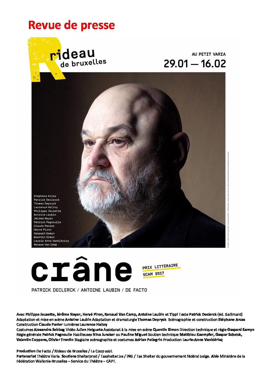 Patrick Declerck – avril 2015 – Patrick Declerck – Copyright obligatoire ©Maurice Rougemont/Opale/Leemage/Rideau de Bruxelles PHOTO LIBRE DE DROITS POUR LA PROMOTION DU SPECTACLE TIRÉ DU LIVRE «CRÂNE» DURÉE D’EXPLOITATION : 3 ans – de 04/2018 à 03/2021 / sans exclusivité – TERRITOIRE FRANCE ET BELGIQUE Pour toute autre utilisation contacter l’agence